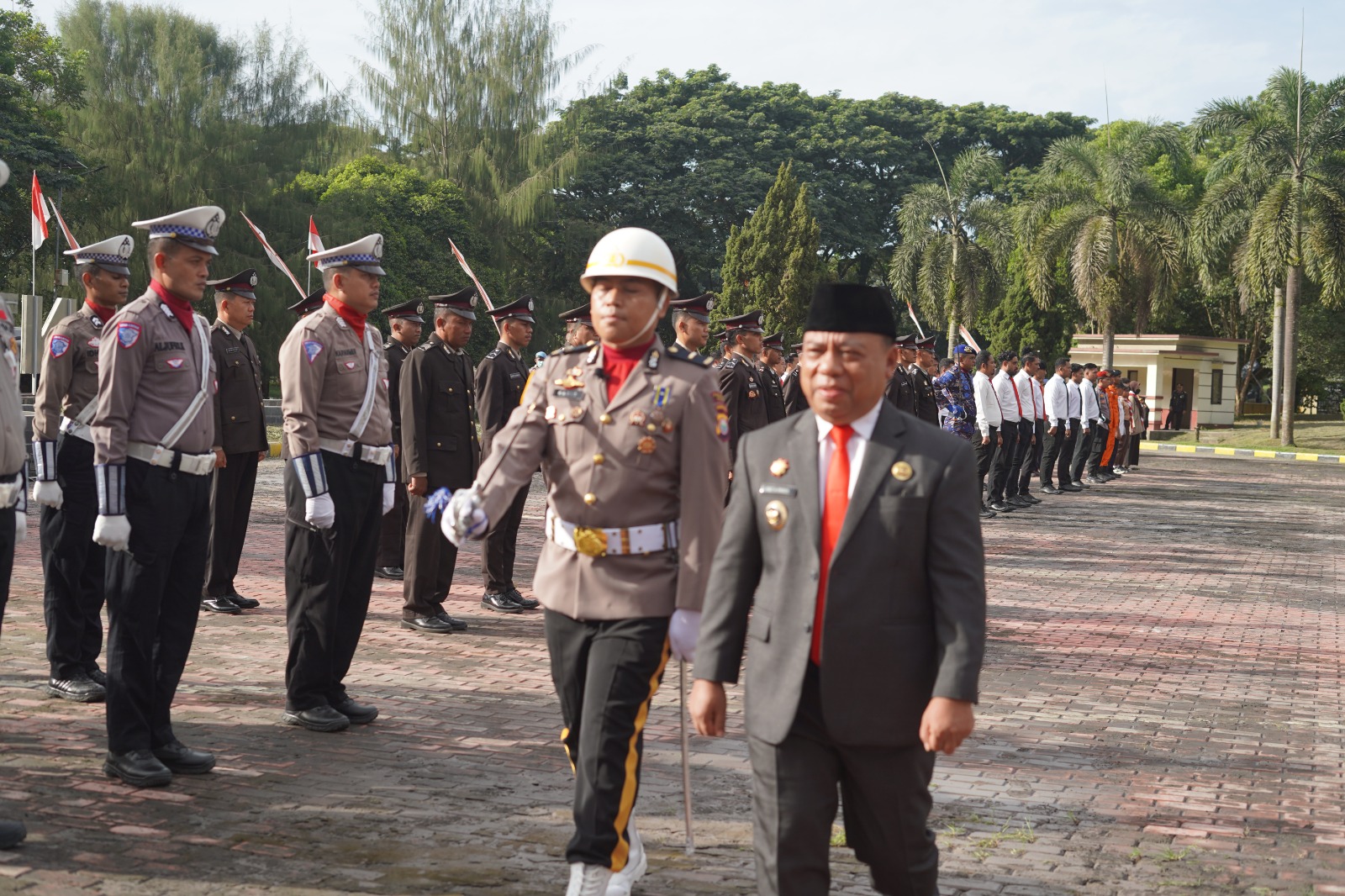 Bertindak sebagai Inspektur Upacara Bupati Halut Dr. Piet Hein Babua, M.Si, Komandan Upacara KBO Sat Intelkam Polres Halmahera Utara Ipda Haris.
