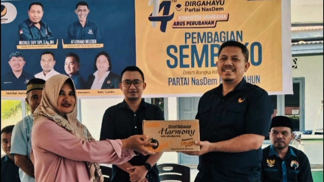 halutpress. com || Dalam rangka memperingati Hari Ulang Tahun (HUT) ke-14, Dewan Pimpinan Daerah (DPD) Partai NasDem Kabupaten Halmahera Utara (Halut) menyelenggarakan kegiatan bakti sosial berupa pemeriksaan kesehatan gratis dan pembagian sembako. Kegiatan yang mengusung semangat “Konsisten Membawa Arus Perubahan” ini dipusatkan di Panti Asuhan Tarakani desa Togawa kecamatan Galela Selatan, pada Rabu, (22/10/2025).