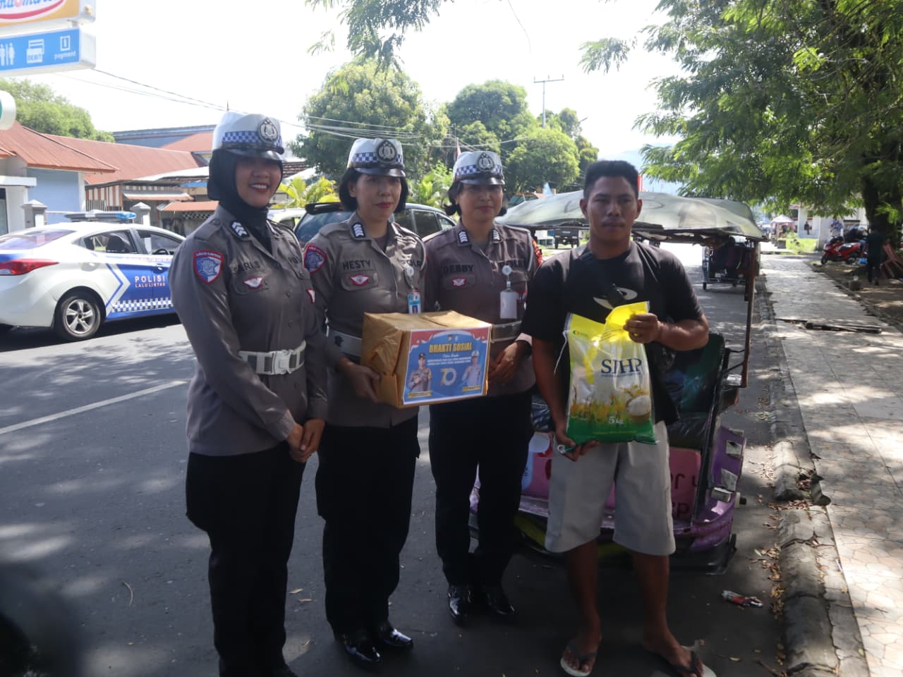 Dalam kegiatan tersebut, Satlantas Polres Halmahera Utara menyalurkan secara langsung paket sembako ke Pondok Pesantren Al -Khairaat Tobelo dan pengedara Ojek Bentor.